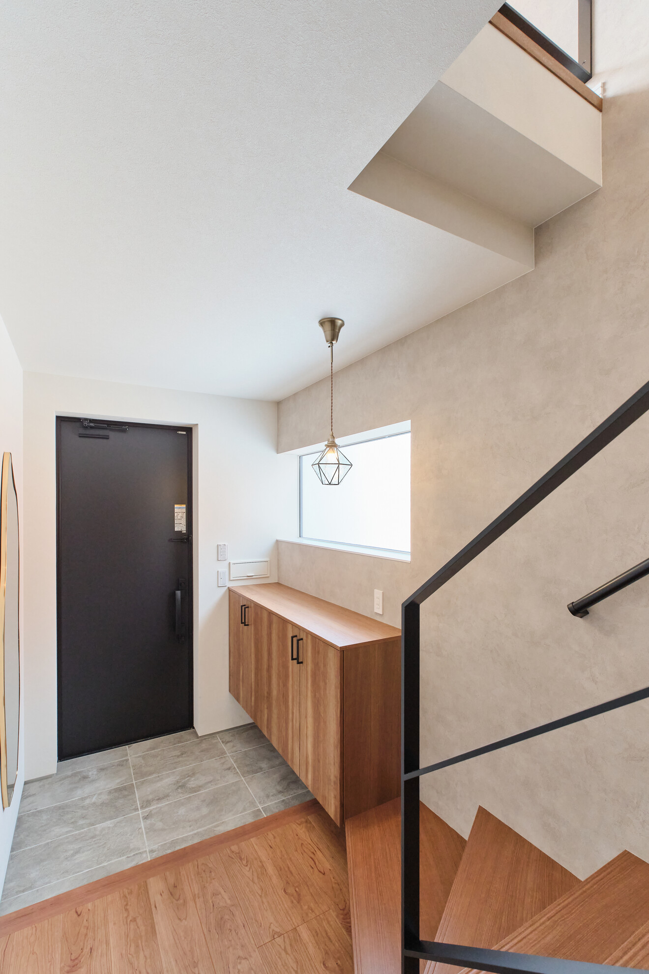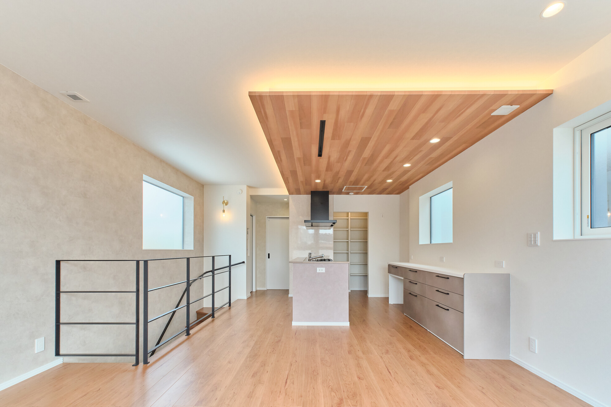 開放的な2階リビングと家事ラク動線。チェリー色×アイアンが織りなす上質な住まい